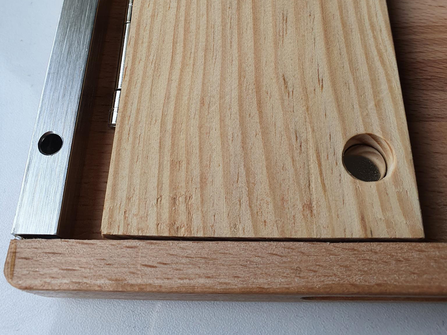 le maintien en position fermée est assuré par 2 charnières et 4 aimants